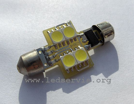 Ako je potrebna ovakva sijalica (30mm dužine) za registarske tablice, tada možemo napraviti ovaj modul sa samo 3 diode i cena je 400.din. Za tablice je ovo sasvim dovoljno.