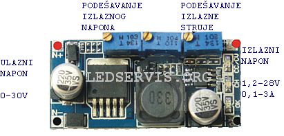 - Sa krajnjim desnim trimerom podesiti izlaznu struju na vrednost diode koju će napajati