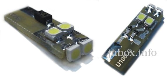 Sledi LED moduli za ubodne sijalice prečnika 10mm. Ovakve standardne sijalice se uvek vade iz svog grla/kućišta te se i moduli isporučuju bez grla, postojeća standardna sijalica se prosto izvuče iz grla, a LED modul se ubode u postojeće grlo. Ako ne sija, samo se okrene kontra zbog polariteta. Ovakve se sijalice nalaze i na mestima za"Osvetljenje kabine".